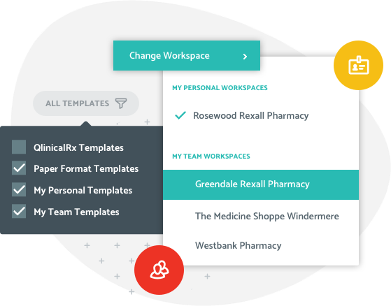 Pharmacists working at one pharmacy as part of a pharmacy team. Join your team’s workspace and share notes and templates. Join as many team workspaces as you need and switch pharmacies with the click of a button.