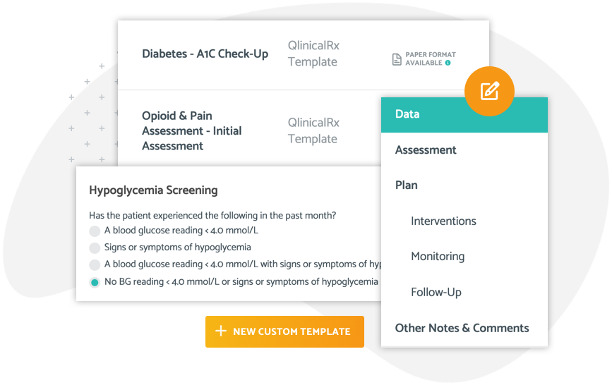Use professionally designed templates created by pharmacists to document your patient care. Create as many notes as you need and customize them for each patient case or for your unique practice.